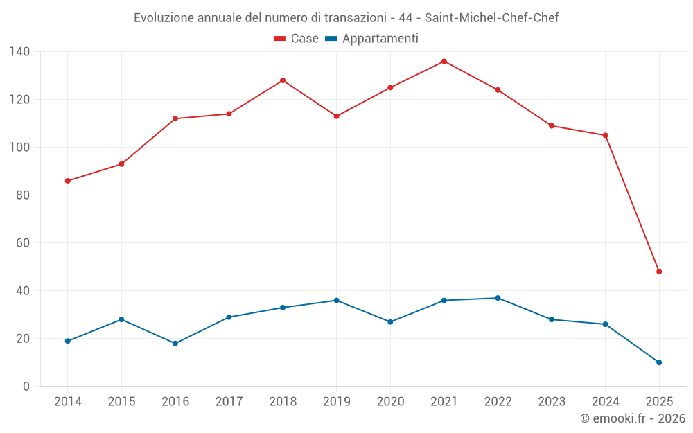 Il prezzo mediano sulle 25 transazioni di appartamenti degli ultimi 12 mesi nel comune di Saint-Michel-Chef-Chef era di 4 259 € al metro quadrato per un valore patrimoniale mediano di 121 500 €. In questo periodo il 60% delle transazioni era tra 2 968 e 5 413 € al metro quadrato (dal 2° all'8° decile).