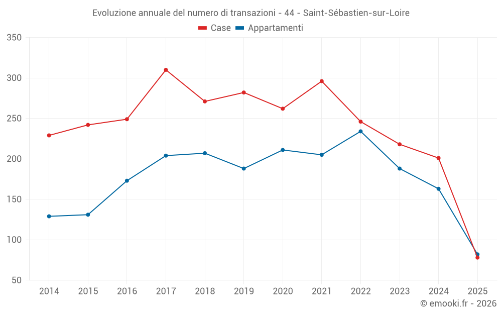 Il prezzo mediano sulle 78 transazioni di case degli ultimi 6 mesi nel comune di Saint-Sébastien-sur-Loire era di 3 403 € al metro quadrato per un valore patrimoniale mediano di 308 950 €. In questo periodo il 60% delle transazioni era tra 2 775 e 4 028 € al metro quadrato (dal 2° all'8° decile).