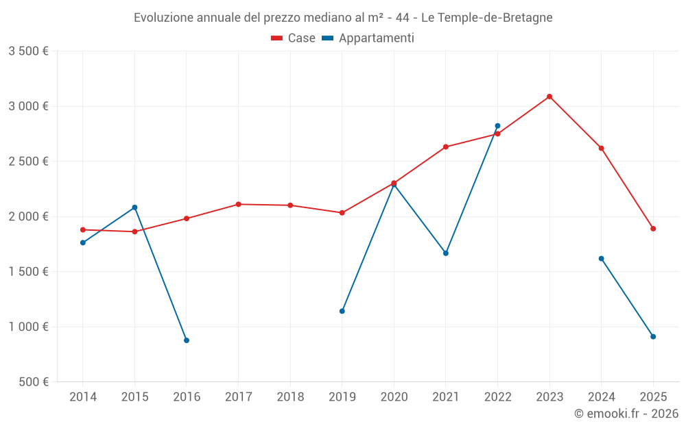 Qual è il prezzo al m2 delle case in Le Temple-de-Bretagne?