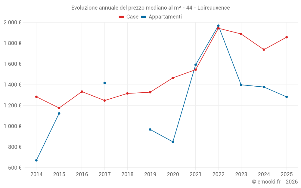 Il prezzo mediano sulle 20 transazioni di case degli ultimi 6 mesi nel comune di Loireauxence era di 1 858 € al metro quadrato per un valore patrimoniale mediano di 160 500 €. In questo periodo il 60% delle transazioni era tra 1 207 e 2 168 € al metro quadrato (dal 2° all'8° decile).