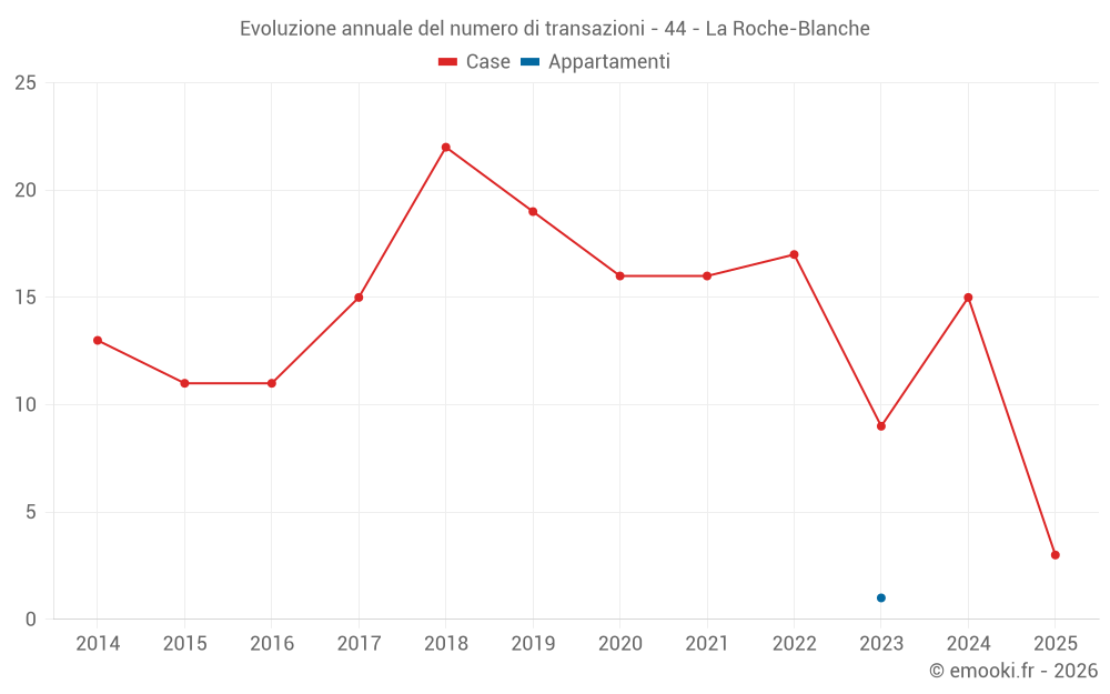 Il prezzo mediano sulle 20 transazioni di case degli ultimi 24 mesi nel comune di La Roche-Blanche era di 1 900 € al metro quadrato per un valore patrimoniale mediano di 171 500 €. In questo periodo il 60% delle transazioni era tra 1 419 e 2 355 € al metro quadrato (dal 2° all'8° decile).