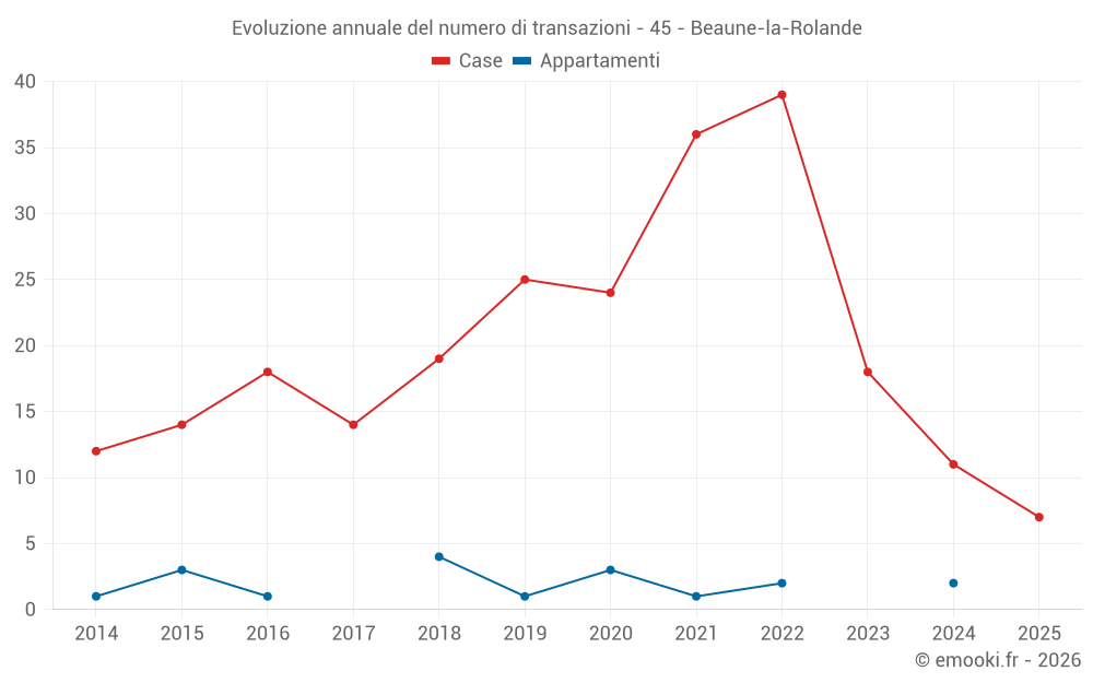 Il prezzo mediano sulle 26 transazioni di case degli ultimi 24 mesi nel comune di Beaune-la-Rolande era di 1 336 € al metro quadrato per un valore patrimoniale mediano di 106 000 €. In questo periodo il 60% delle transazioni era tra 700 e 1 849 € al metro quadrato (dal 2° all'8° decile).
