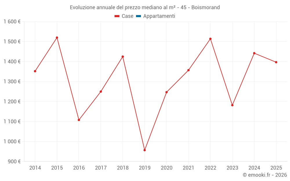 Il prezzo mediano sulle 15 transazioni di case degli ultimi 24 mesi nel comune di Boismorand era di 1 271 € al metro quadrato per un valore patrimoniale mediano di 129 000 €. In questo periodo il 60% delle transazioni era tra 968 e 1 735 € al metro quadrato (dal 2° all'8° decile).