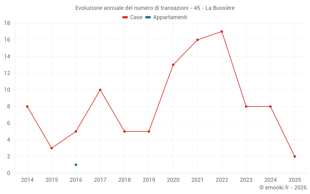 Il prezzo mediano sulle 15 transazioni di case degli ultimi 24 mesi nel comune di La Bussière era di 1 000 € al metro quadrato per un valore patrimoniale mediano di 90 000 €. In questo periodo il 60% delle transazioni era tra 598 e 1 454 € al metro quadrato (dal 2° all'8° decile).