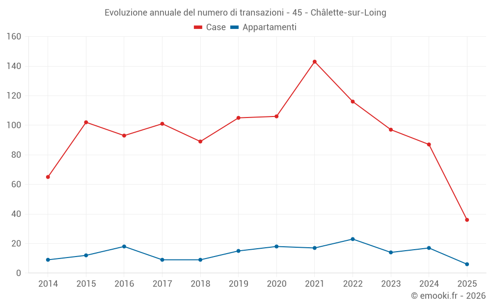 Il prezzo mediano sulle 36 transazioni di case degli ultimi 6 mesi nel comune di Châlette-sur-Loing era di 1 334 € al metro quadrato per un valore patrimoniale mediano di 120 000 €. In questo periodo il 60% delle transazioni era tra 1 078 e 1 770 € al metro quadrato (dal 2° all'8° decile).