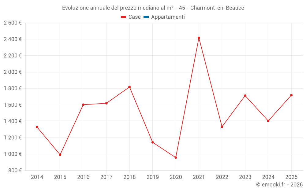 Evoluzione del prezzo mediano al m² degli appartamenti