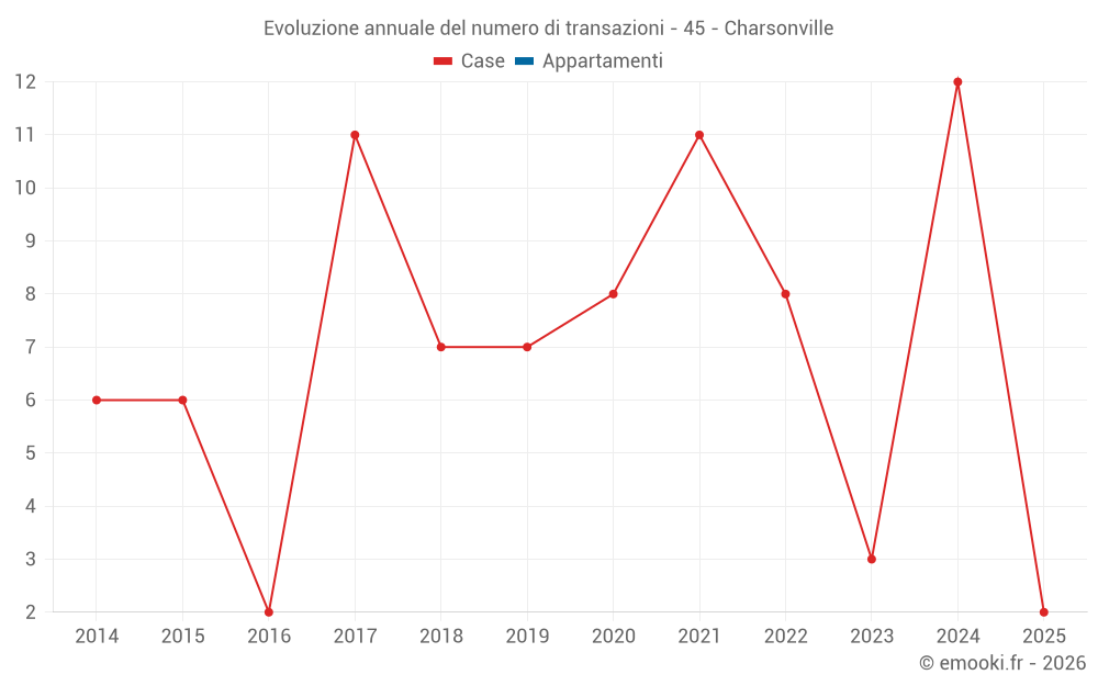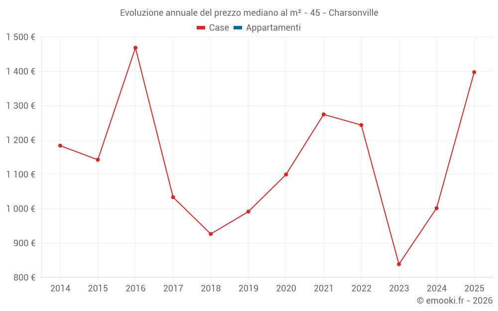 Il prezzo mediano sulle 15 transazioni di case degli ultimi 24 mesi nel comune di Charsonville era di 1 014 € al metro quadrato per un valore patrimoniale mediano di 160 000 €. In questo periodo il 60% delle transazioni era tra 781 e 1 483 € al metro quadrato (dal 2° all'8° decile).