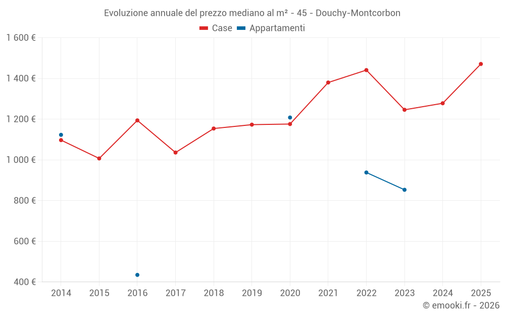 Qual è il prezzo al m2 delle case in Douchy-Montcorbon?