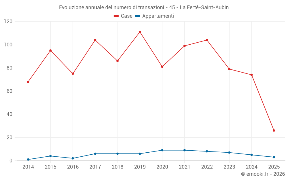 Il prezzo mediano sulle 26 transazioni di case degli ultimi 6 mesi nel comune di La Ferté-Saint-Aubin era di 2 044 € al metro quadrato per un valore patrimoniale mediano di 206 000 €. In questo periodo il 60% delle transazioni era tra 1 656 e 2 294 € al metro quadrato (dal 2° all'8° decile).
