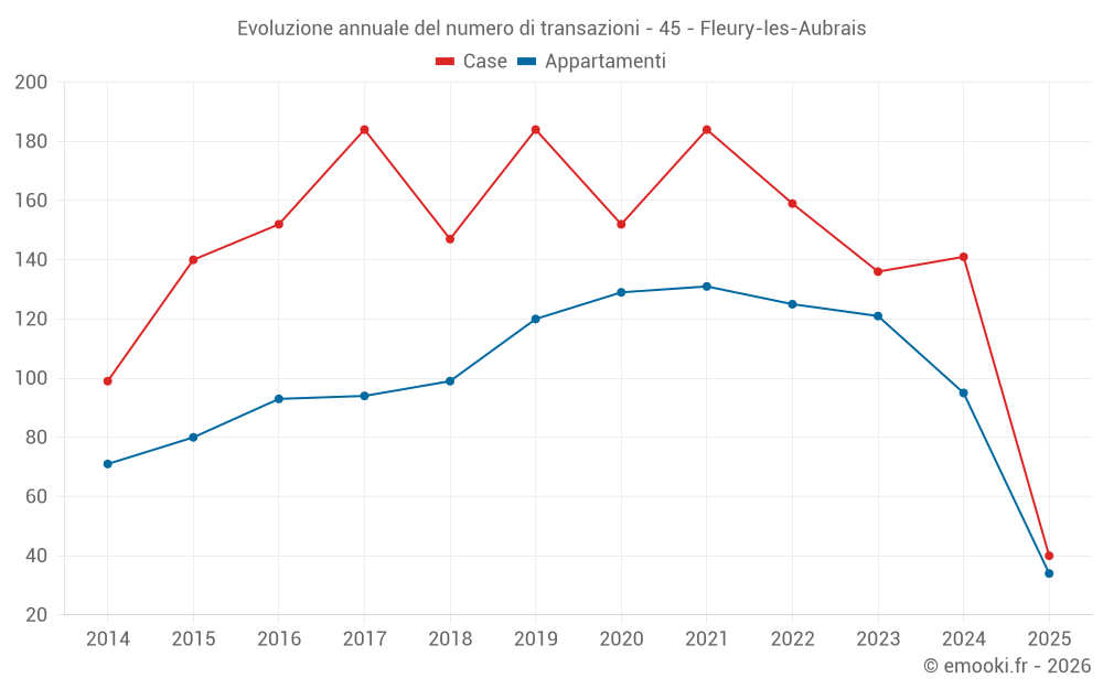Il prezzo mediano sulle 40 transazioni di case degli ultimi 6 mesi nel comune di Fleury-les-Aubrais era di 2 208 € al metro quadrato per un valore patrimoniale mediano di 203 000 €. In questo periodo il 60% delle transazioni era tra 1 865 e 2 595 € al metro quadrato (dal 2° all'8° decile).