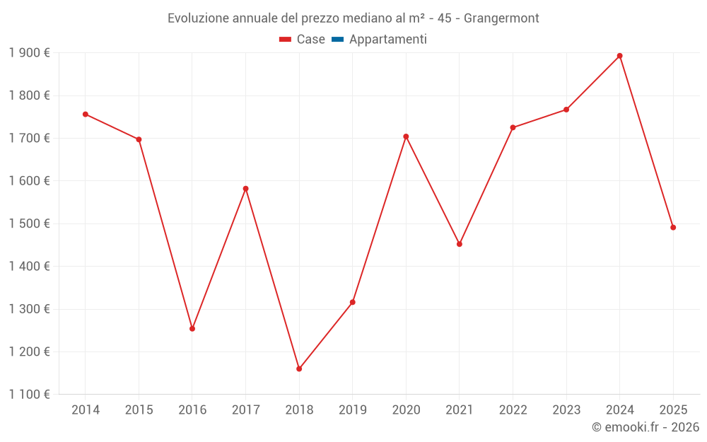 Evoluzione del prezzo mediano al m² degli appartamenti