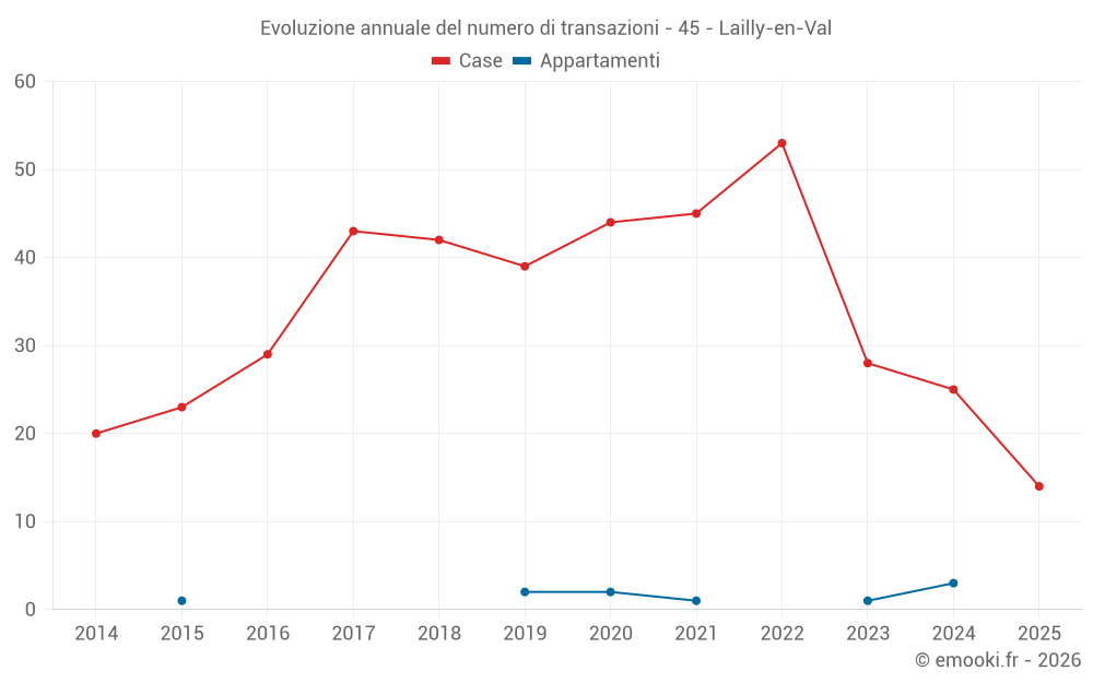 Il prezzo mediano sulle 31 transazioni di case degli ultimi 12 mesi nel comune di Lailly-en-Val era di 1 907 € al metro quadrato per un valore patrimoniale mediano di 192 600 €. In questo periodo il 60% delle transazioni era tra 1 333 e 2 429 € al metro quadrato (dal 2° all'8° decile).