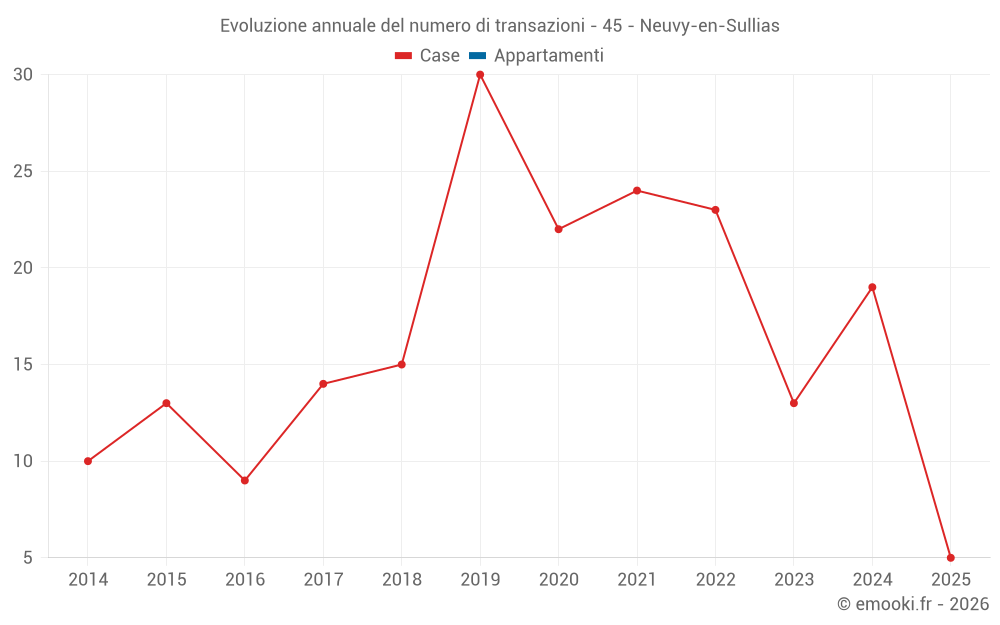 Il prezzo mediano sulle 30 transazioni di case degli ultimi 24 mesi nel comune di Neuvy-en-Sullias era di 1 920 € al metro quadrato per un valore patrimoniale mediano di 166 500 €. In questo periodo il 60% delle transazioni era tra 1 549 e 2 303 € al metro quadrato (dal 2° all'8° decile).