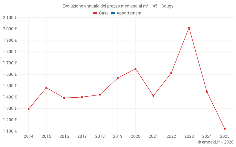 Il prezzo mediano sulle 16 transazioni di case degli ultimi 24 mesi nel comune di Sougy era di 1 434 € al metro quadrato per un valore patrimoniale mediano di 157 050 €. In questo periodo il 60% delle transazioni era tra 1 046 e 2 227 € al metro quadrato (dal 2° all'8° decile).