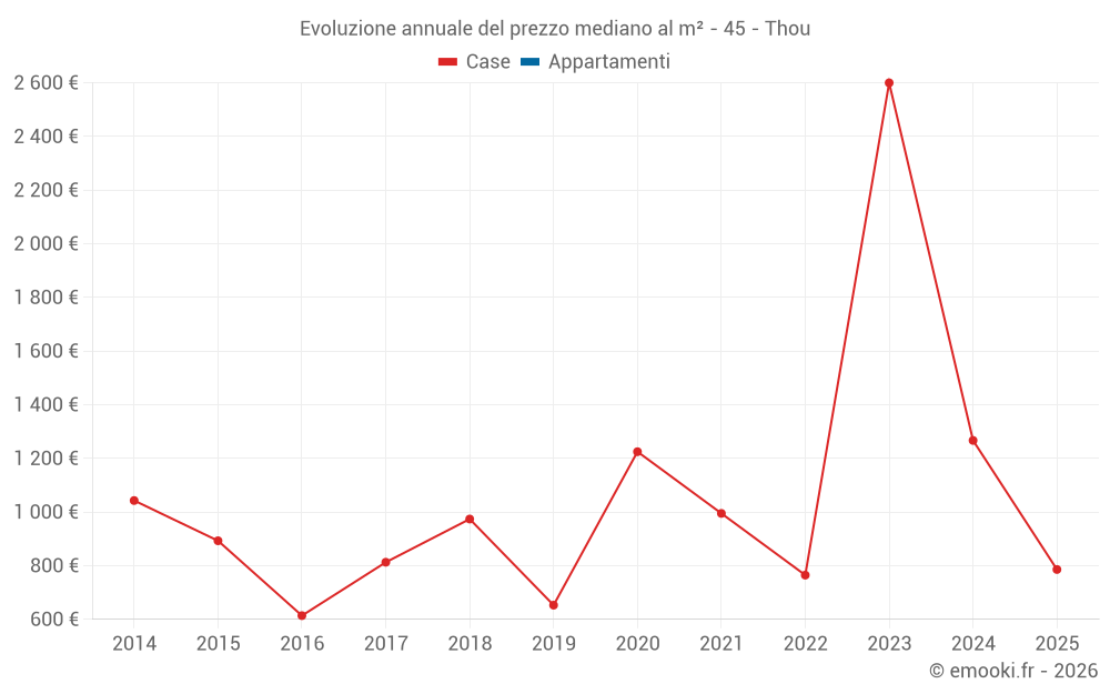 Evoluzione del prezzo mediano al m² degli appartamenti