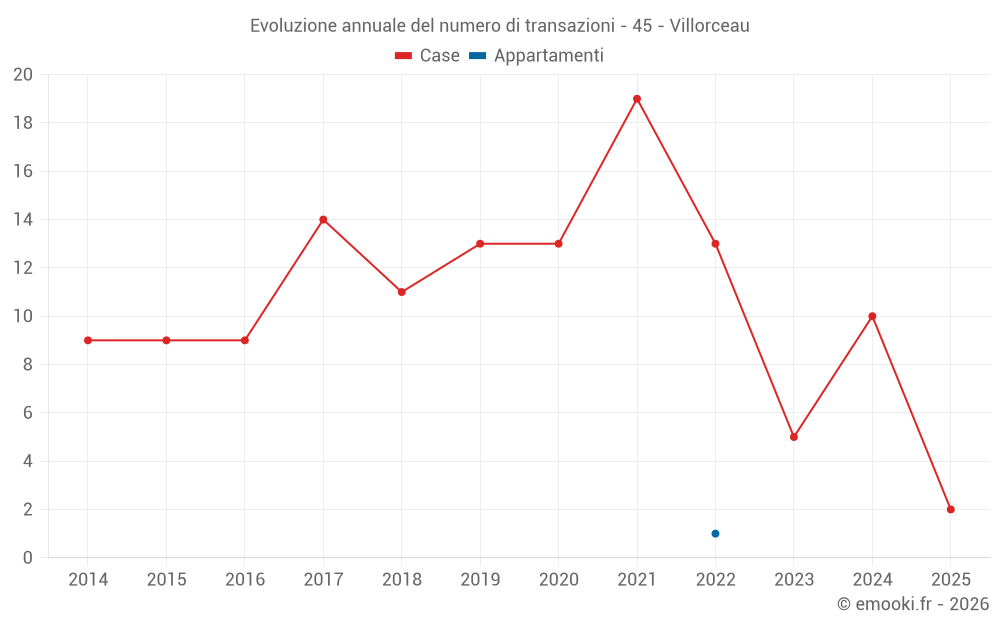 Il prezzo mediano sulle 16 transazioni di case degli ultimi 24 mesi nel comune di Villorceau era di 1 648 € al metro quadrato per un valore patrimoniale mediano di 182 000 €. In questo periodo il 60% delle transazioni era tra 1 161 e 2 219 € al metro quadrato (dal 2° all'8° decile).