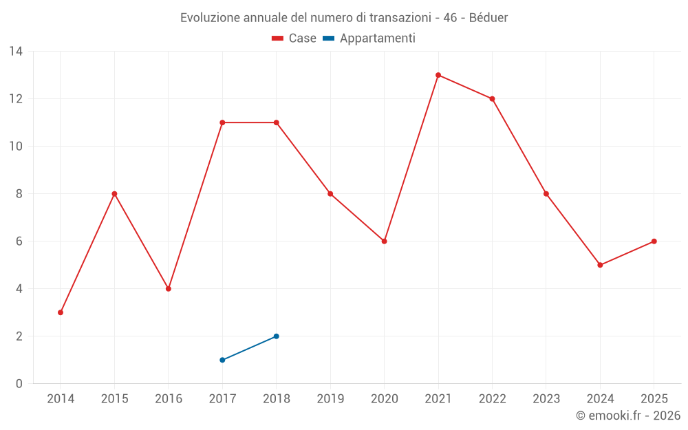 Il prezzo mediano sulle 17 transazioni di case degli ultimi 24 mesi nel comune di Béduer era di 1 852 € al metro quadrato per un valore patrimoniale mediano di 145 000 €. In questo periodo il 60% delle transazioni era tra 1 197 e 2 291 € al metro quadrato (dal 2° all'8° decile).