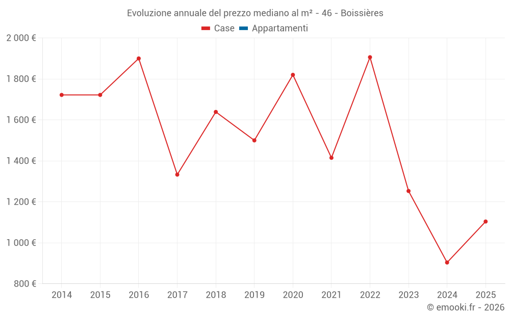 Evoluzione del prezzo mediano al m² degli appartamenti