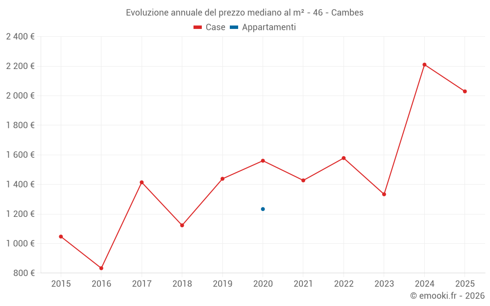 Evoluzione annuale del prezzo mediano al m²