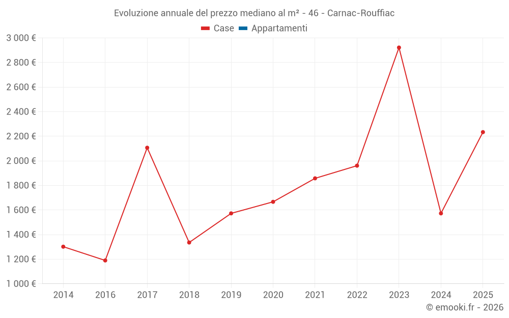 Evoluzione del prezzo mediano al m² degli appartamenti