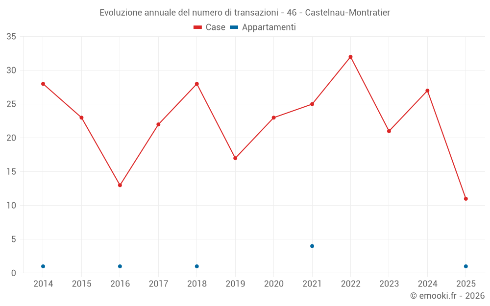 Il prezzo mediano sulle 27 transazioni di case degli ultimi 12 mesi nel comune di Castelnau-Montratier era di 1 556 € al metro quadrato per un valore patrimoniale mediano di 166 260 €. In questo periodo il 60% delle transazioni era tra 1 196 e 2 310 € al metro quadrato (dal 2° all'8° decile).