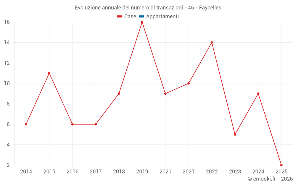 Il prezzo mediano sulle 15 transazioni di case degli ultimi 24 mesi nel comune di Faycelles era di 2 250 € al metro quadrato per un valore patrimoniale mediano di 217 000 €. In questo periodo il 60% delle transazioni era tra 1 509 e 3 083 € al metro quadrato (dal 2° all'8° decile).