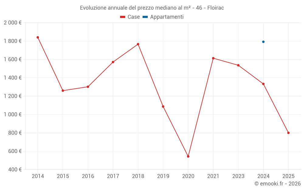 Evoluzione del prezzo mediano al m² degli appartamenti