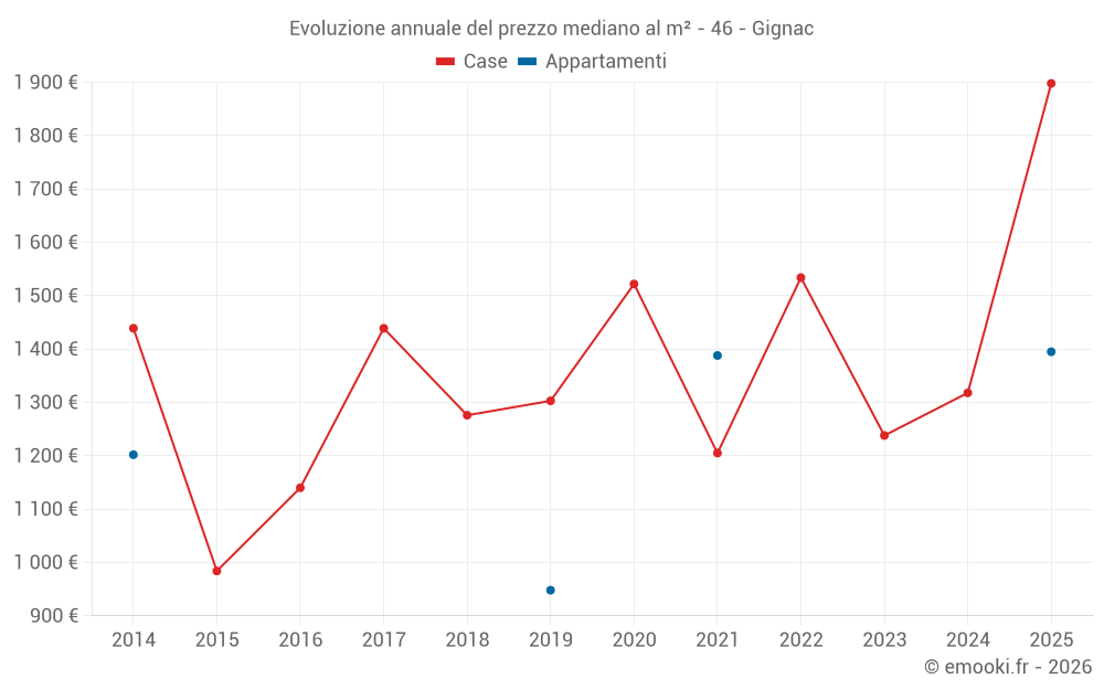 Il prezzo mediano sulle 16 transazioni di case degli ultimi 24 mesi nel comune di Gignac era di 1 690 € al metro quadrato per un valore patrimoniale mediano di 250 800 €. In questo periodo il 60% delle transazioni era tra 1 222 e 2 138 € al metro quadrato (dal 2° all'8° decile).