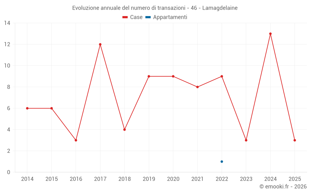 Il prezzo mediano sulle 18 transazioni di case degli ultimi 24 mesi nel comune di Lamagdelaine era di 1 621 € al metro quadrato per un valore patrimoniale mediano di 169 900 €. In questo periodo il 60% delle transazioni era tra 1 166 e 2 279 € al metro quadrato (dal 2° all'8° decile).