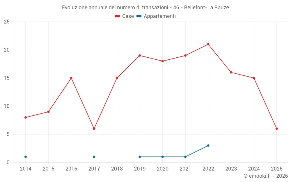 Il prezzo mediano sulle 24 transazioni di case degli ultimi 24 mesi nel comune di Bellefont-La Rauze era di 1 590 € al metro quadrato per un valore patrimoniale mediano di 113 010 €. In questo periodo il 60% delle transazioni era tra 504 e 1 896 € al metro quadrato (dal 2° all'8° decile).