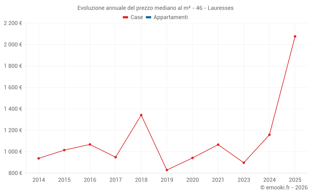 Evoluzione del prezzo mediano al m² degli appartamenti