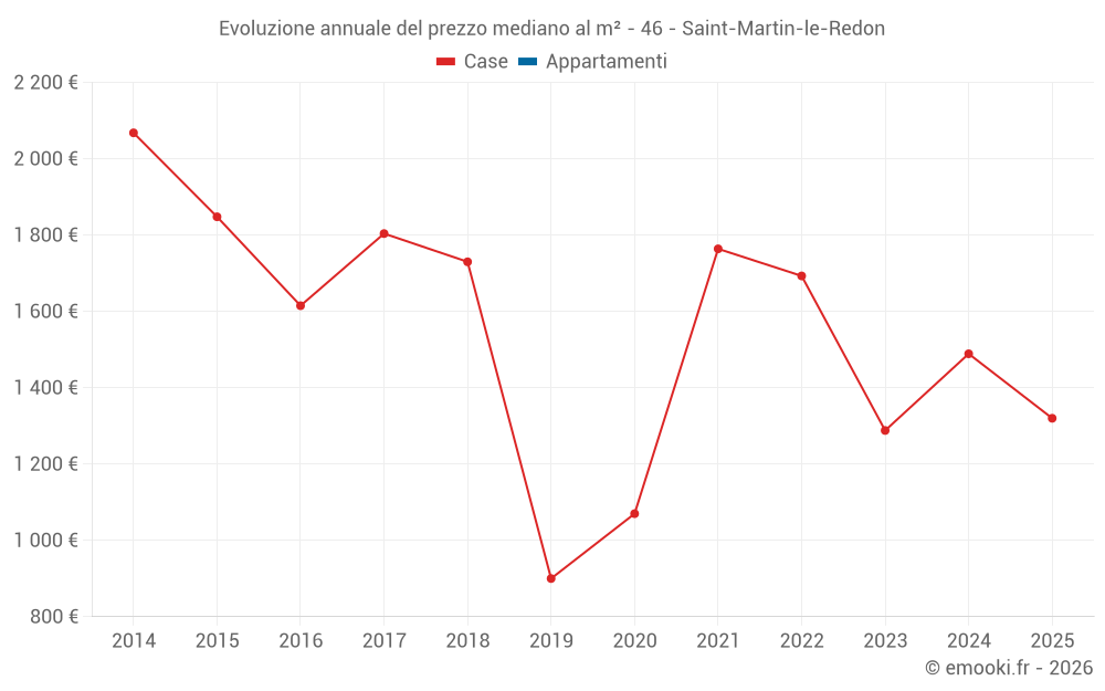 Evoluzione del prezzo mediano al m² degli appartamenti
