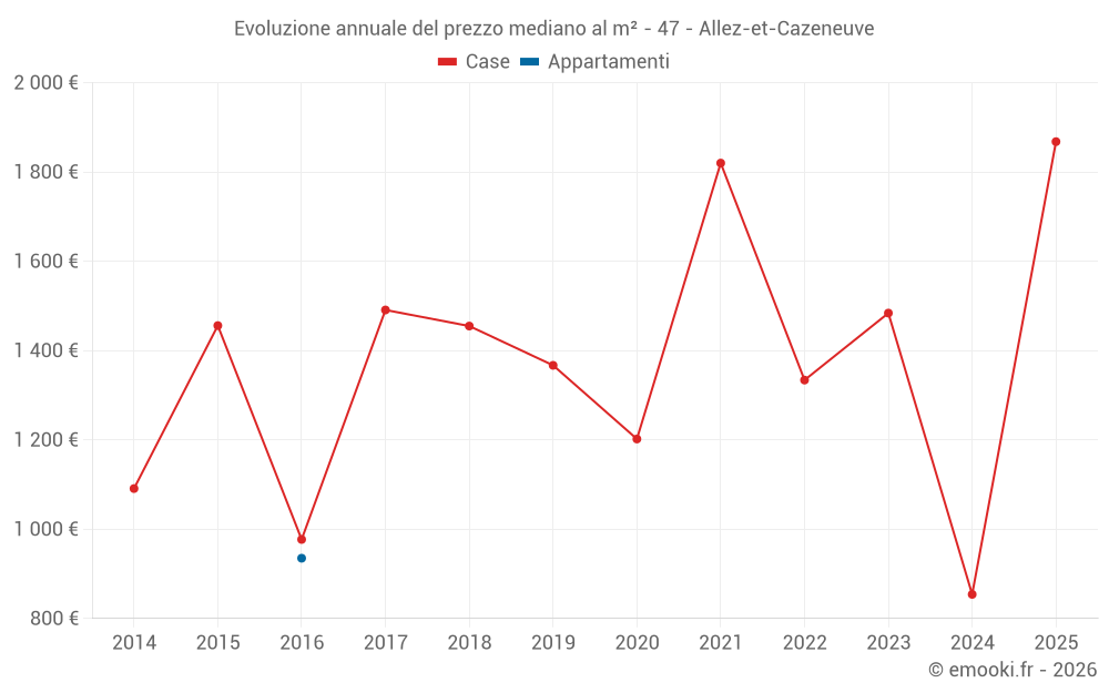 Evoluzione del prezzo mediano al m² degli appartamenti