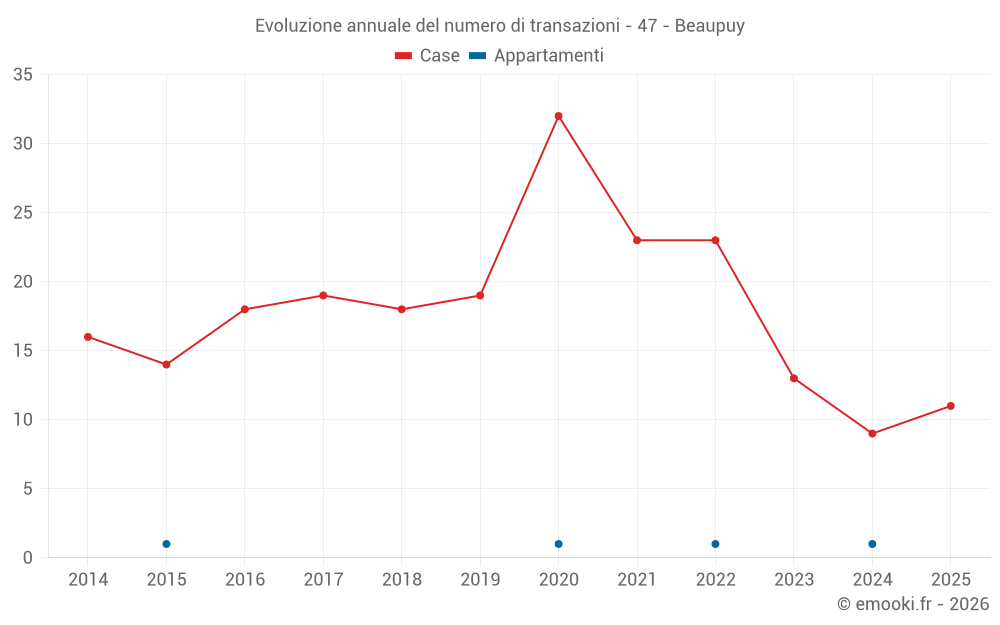 Il prezzo mediano sulle 27 transazioni di case degli ultimi 24 mesi nel comune di Beaupuy era di 2 101 € al metro quadrato per un valore patrimoniale mediano di 225 000 €. In questo periodo il 60% delle transazioni era tra 1 865 e 2 307 € al metro quadrato (dal 2° all'8° decile).