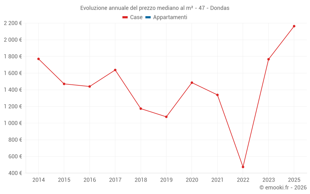 Evoluzione del prezzo mediano al m² degli appartamenti