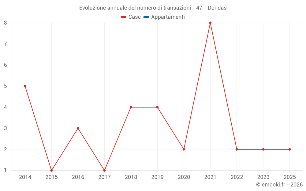 Mappa dei prezzi della casa nel comune di Dondas, scegli una sezione per vedere le transazioni per parcella.