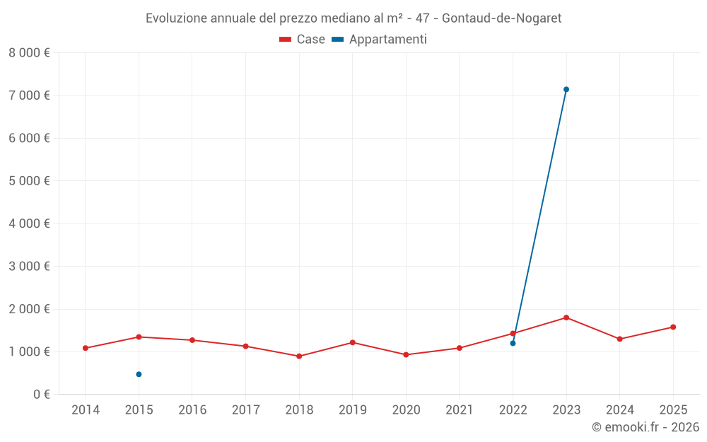 Il prezzo mediano sulle 26 transazioni di case degli ultimi 24 mesi nel comune di Gontaud-de-Nogaret era di 1 585 € al metro quadrato per un valore patrimoniale mediano di 155 000 €. In questo periodo il 60% delle transazioni era tra 844 e 2 200 € al metro quadrato (dal 2° all'8° decile).