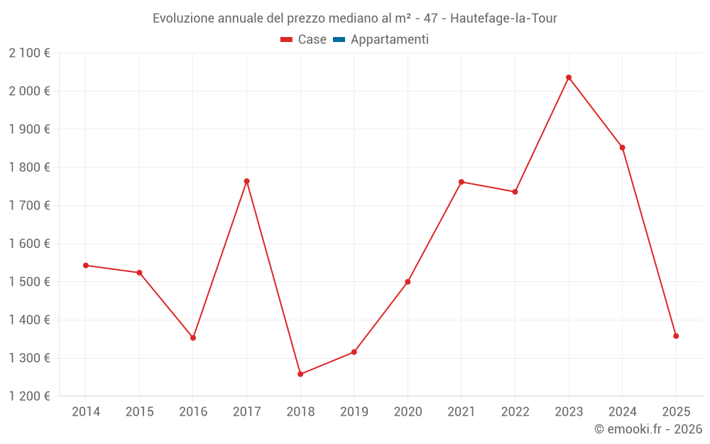 Il prezzo mediano sulle 21 transazioni di case degli ultimi 24 mesi nel comune di Hautefage-la-Tour era di 1 837 € al metro quadrato per un valore patrimoniale mediano di 180 200 €. In questo periodo il 60% delle transazioni era tra 994 e 2 364 € al metro quadrato (dal 2° all'8° decile).