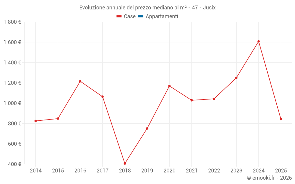 Evoluzione del prezzo mediano al m² degli appartamenti