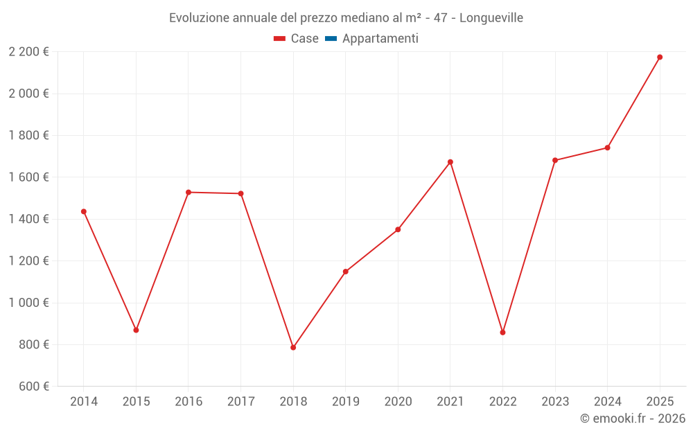 Evoluzione del prezzo mediano al m² degli appartamenti