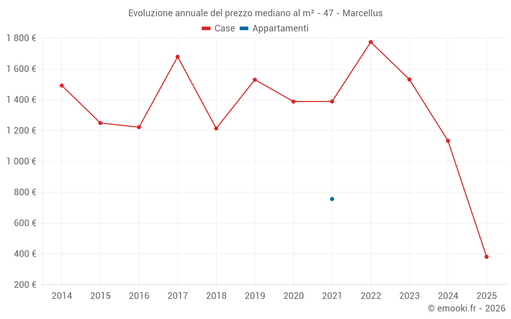 Evoluzione del prezzo mediano al m² degli appartamenti