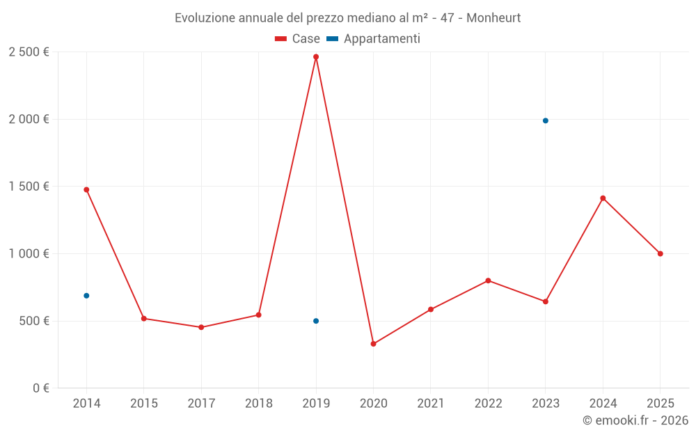 Attenzione, ultimo anno incompleto. Le proiezioni sono effettuate in base alle proporzioni tra semestri dell'anno precedente a livello dipartimentale/nazionale e per tipo di proprietà .