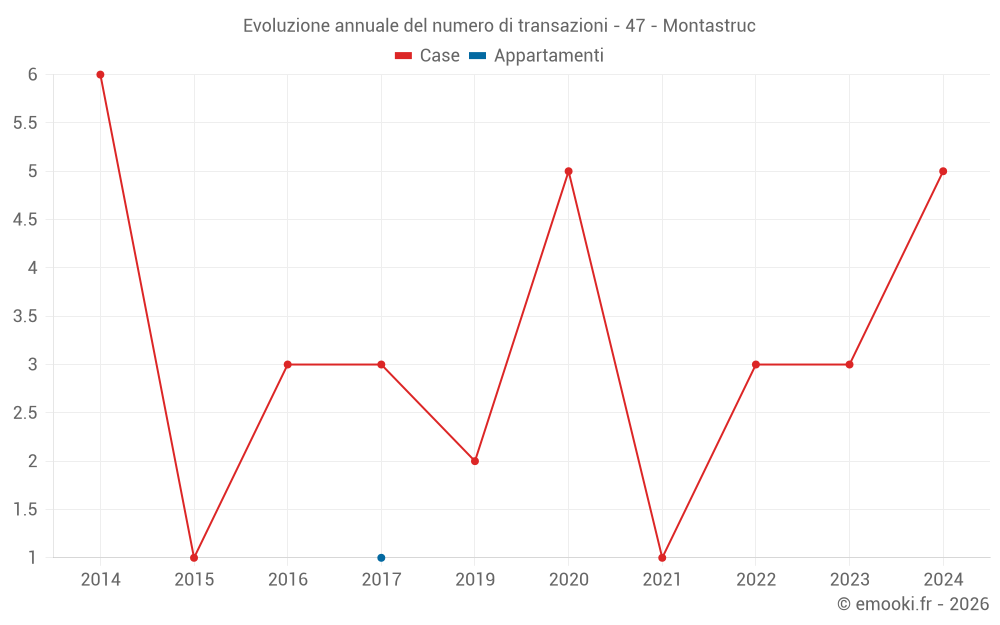 Attenzione, ultimo anno incompleto. Le proiezioni sono effettuate in base alle proporzioni tra semestri dell'anno precedente a livello dipartimentale/nazionale e per tipo di proprietà .