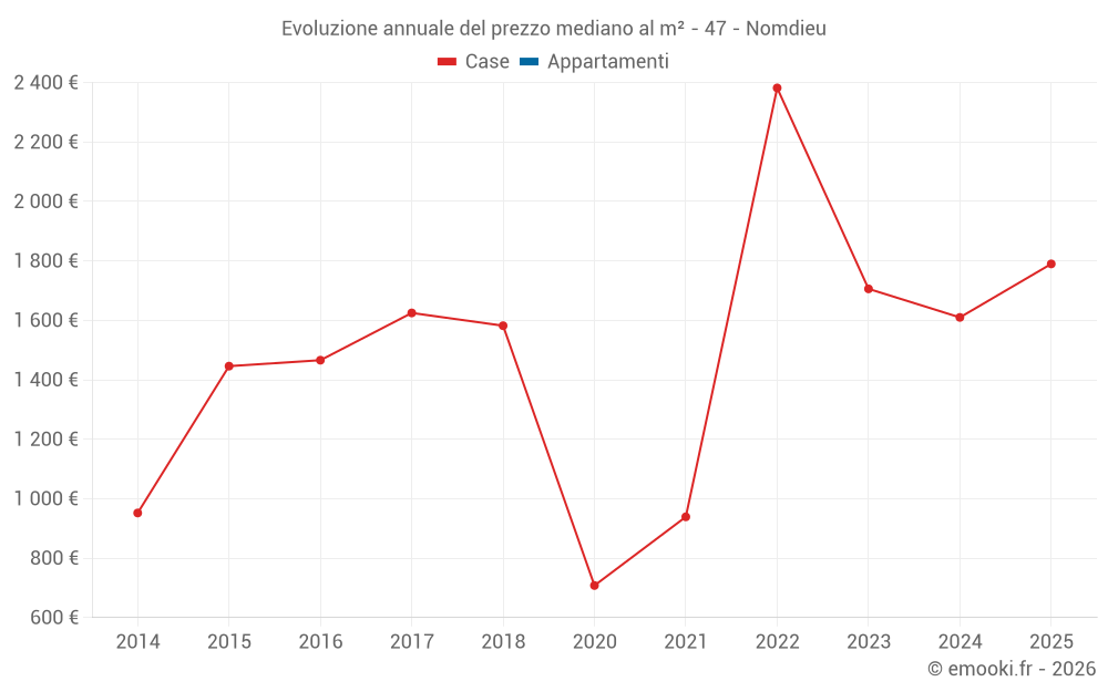 Evoluzione del prezzo mediano al m² degli appartamenti