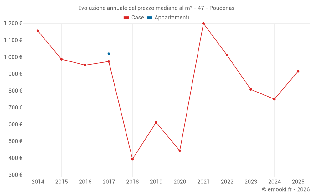Prezzo al m² in Poudenas