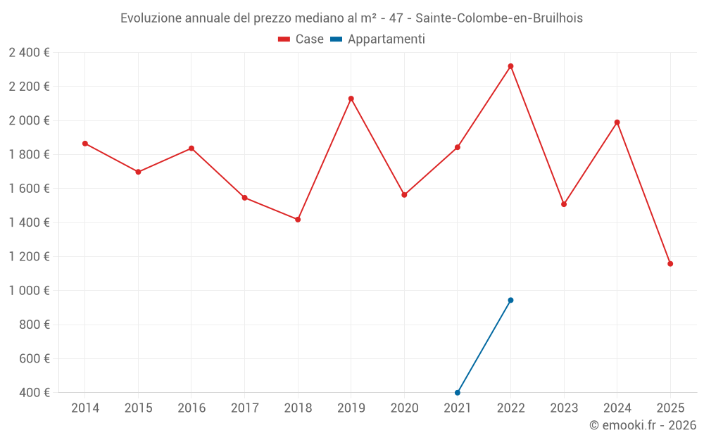 Qual è il prezzo al m2 delle case in Sainte-Colombe-en-Bruilhois?