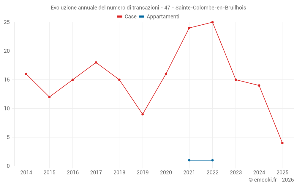 Il prezzo mediano sulle 28 transazioni di case degli ultimi 24 mesi nel comune di Sainte-Colombe-en-Bruilhois era di 1 777 € al metro quadrato per un valore patrimoniale mediano di 186 000 €. In questo periodo il 60% delle transazioni era tra 1 073 e 2 526 € al metro quadrato (dal 2° all'8° decile).