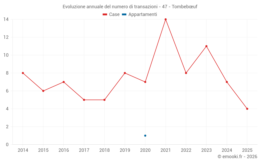 Il prezzo mediano sulle 16 transazioni di case degli ultimi 24 mesi nel comune di Tombebœuf era di 966 € al metro quadrato per un valore patrimoniale mediano di 103 000 €. In questo periodo il 60% delle transazioni era tra 519 e 2 000 € al metro quadrato (dal 2° all'8° decile).