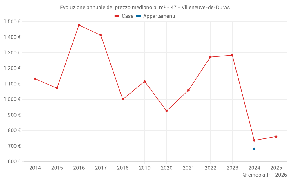 Evoluzione del prezzo mediano al m² degli appartamenti