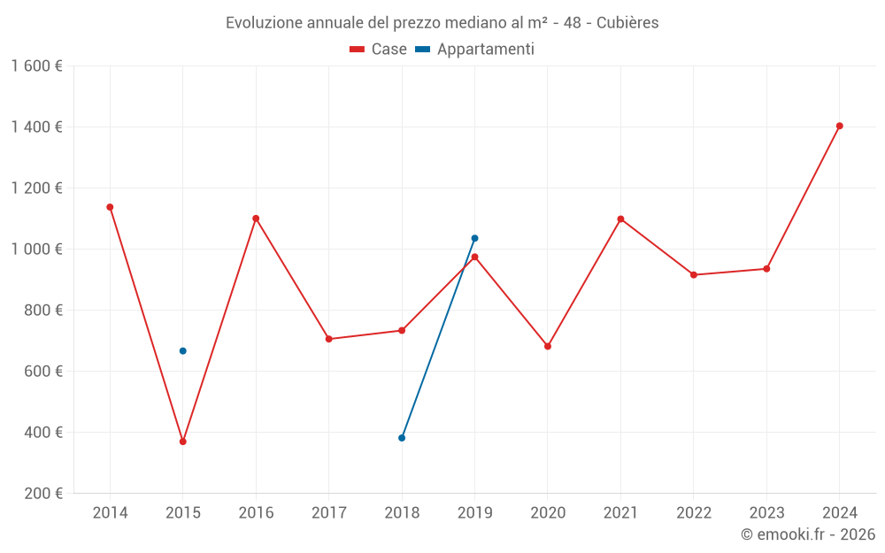 Evoluzione del prezzo mediano al m² degli appartamenti